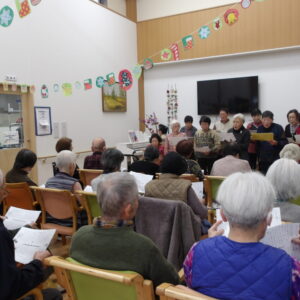 ![]() 礼羽コーラス会の方々が来所して頂き、ご利用様と歌唱を楽しみました。 |
